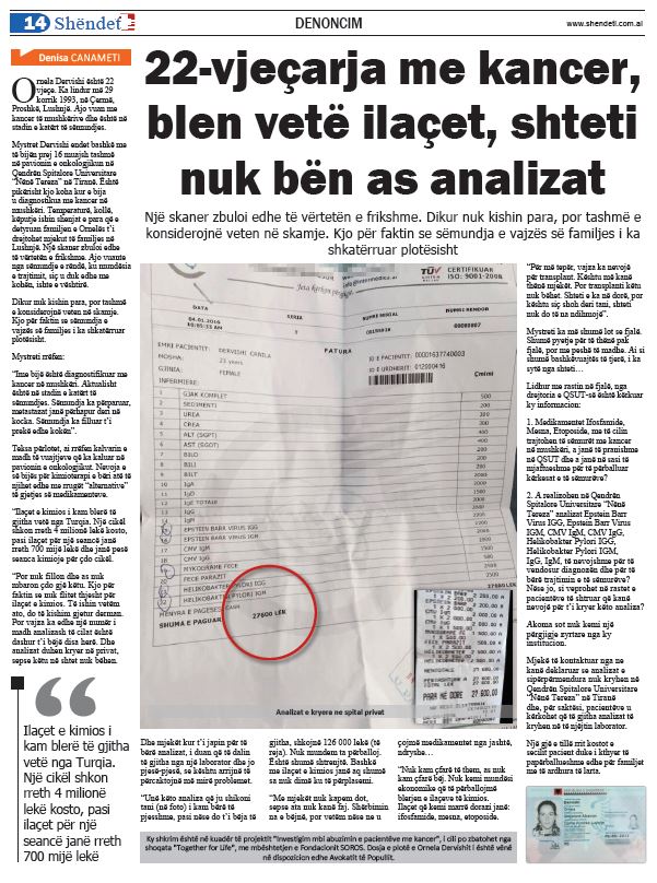 Vajza me kancer: Blen vetë ilaçet. Shteti nuk bën as analizat