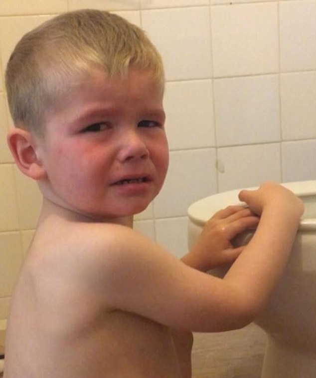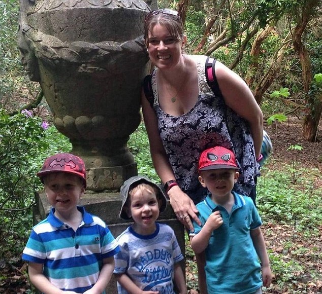 Më në fund duke qeshur! Lukas dhe Zac, të fotografuar së bashku me nënën Ntalie dhe vëllanë Aaron, më në fund janë të gëzuar.