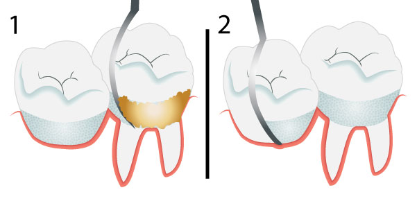 Hapi 3: përdorni perin dentar për të hequr gurëzat, kujdesuni që mos të irritoni mishin e dhëmbëve.