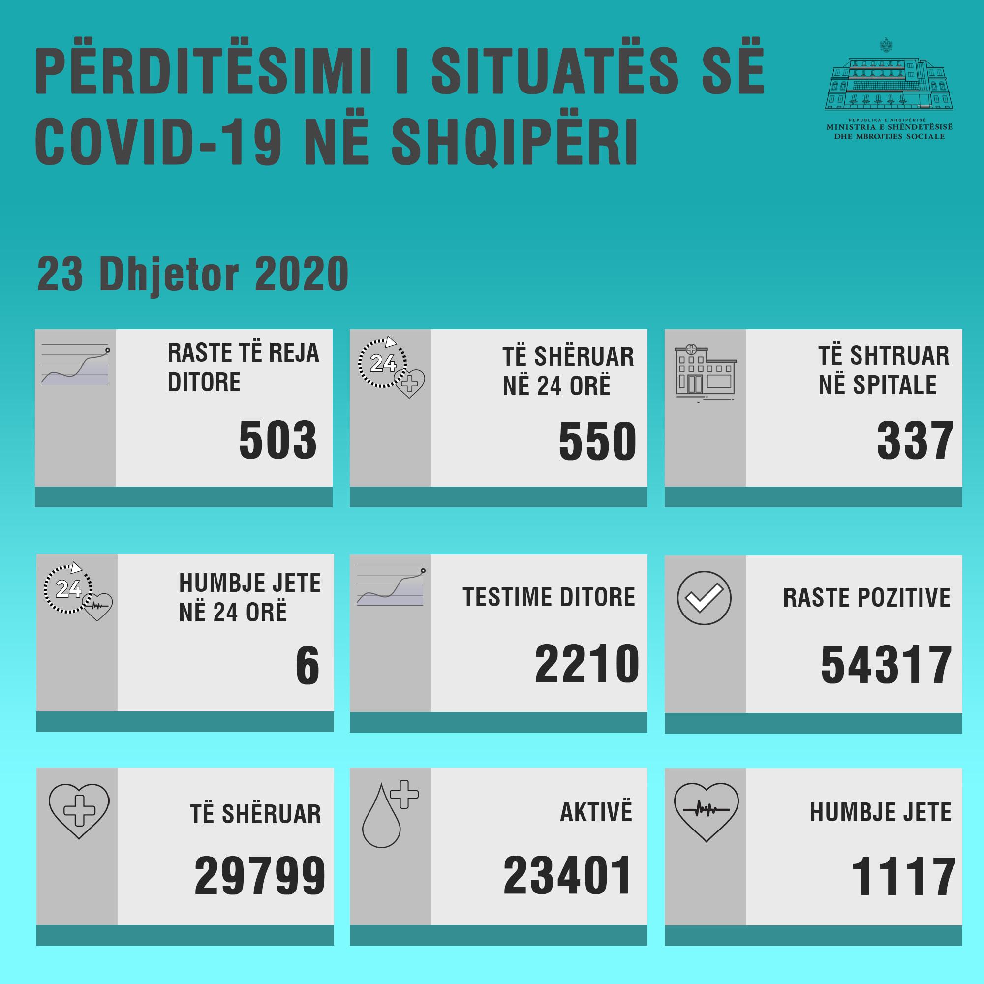 COVID19/ MSH: 503 raste të reja dhe 6 humbje jete në 24 orët e fundit