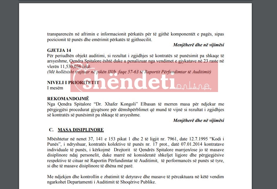Qendra Spitalore Elbasan, penalizohet nga gjykata për 23 raste të zgjidhjes së kontratës së punës