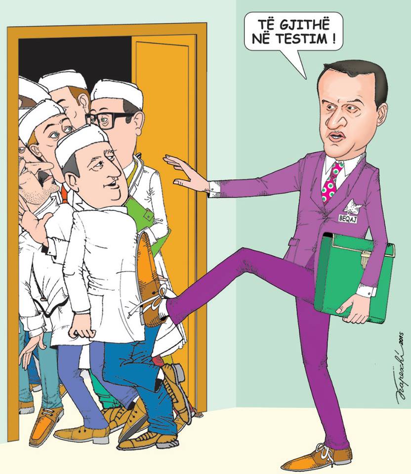 Beqja në karikaturën e Kapexhiut për testimet