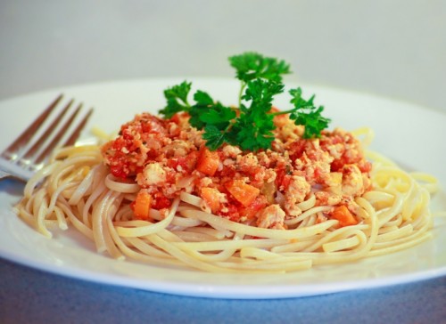 Spageti me salcë pikante