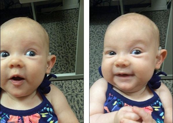 I vendosin aparat dëgjimi! Shikoni reagimin e foshnjës kur dëgjon zërin e nënës (Video)