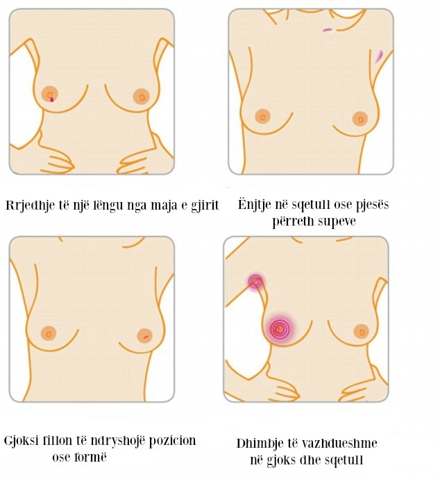 Disa nga shenjat paralajmëruese të kancerit të gjirit janë: