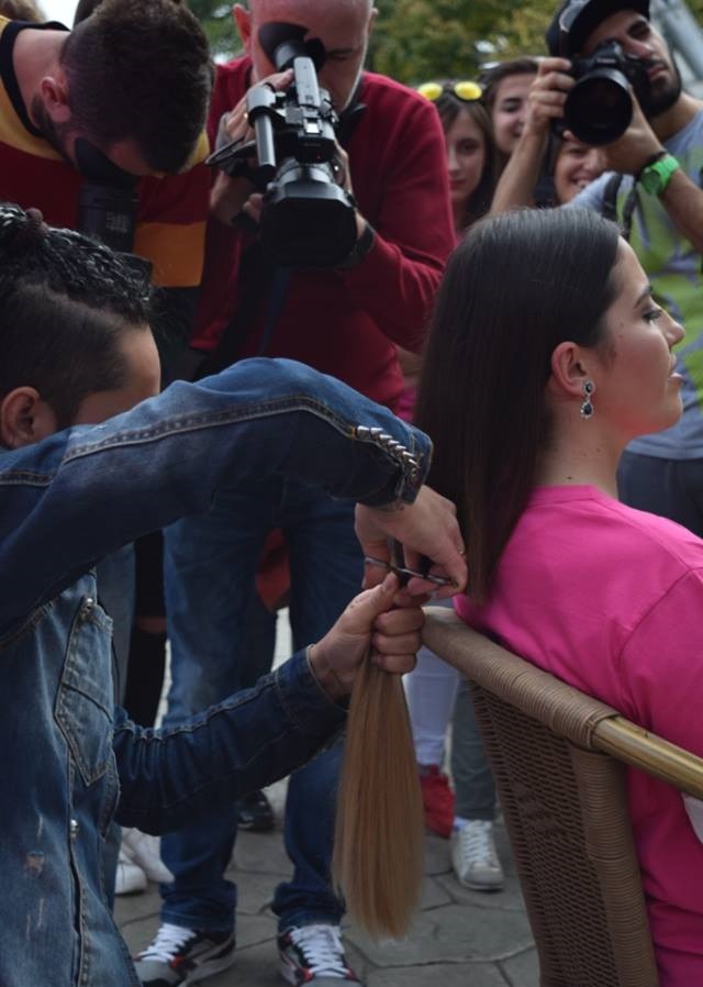 Shumë vajza erdhën enkas në aktivitet për të dhuruar flokët për të sëmurët me kancer. Këto flokë më pas do përpunohen në paruke të personalizuara dhe do të dhurohen për personat që kanë humbur flokët për shkak të mjekimeve.