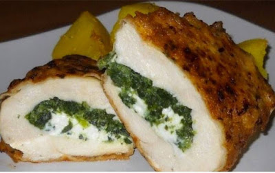 Në atë “xhep” vendosim pak spinaq të zier dhe të kulluar, si dhe pak djathë.