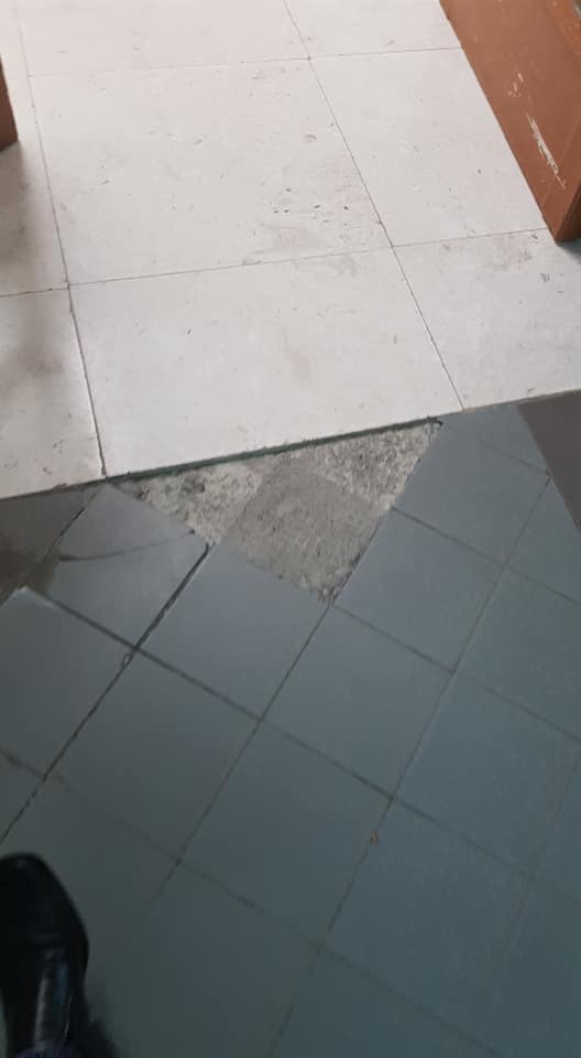 Në një postim të bërë nga një qytetar në rrjetin e tij social duket qartë gjendja në të cilën ndodhet materniteti “Mbretëresha Geraldinë”. Pllaka të thyera, mure të çara dhe lagështirë, këto pamje tregojnë fotot e postuara.