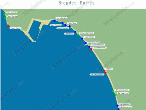 Agjencia Kombëtare e Mjedisit ka publikuar hartën e plazheve të bregdetit shqiptar, duke i vlerësuar ato sipas cilësisë së tyre. Nga harta e publikuar mbi monitorimin e plazheve, bie në sy fakti se janë 53 plazhe me cilësi të shumë të mirë, në krahasim me 12 plazhet që janë vlerësuar me cilësi të keqe.