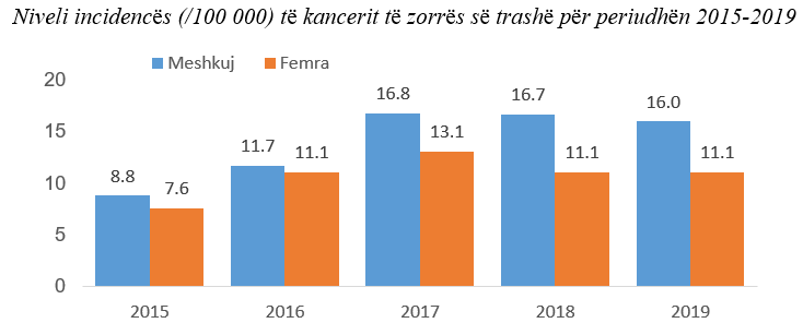Në periudhën 2017-2019 në Shqipëri janë diagnostikuar cdo vit rreth 400 raste të reja me kancer kolo-rektal, një dyfishim krahasuar me periudhën e mëparshme. Rritja e shtrimeve spitalore është më e lartë se rritja e incidencës së këtij kanceri duke dëshmuar për një numër gjithnjë e më të lartë kontaktesh të rasteve të diagnostikuara me sistemin shëndetësor.
