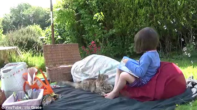 Siç mund të shihni edhe në videon e mëposhtme, ato bëjnë gjithçka bashkë, me macen e ulur afër saj në kopsht, ndërkohë që ajo po shikon librat. Vajza ka nisur të flasë pasi erdhi macja në shtëpi. Iris është një artiste e lindur, pasi bën piktura të jashtëzakonshme.