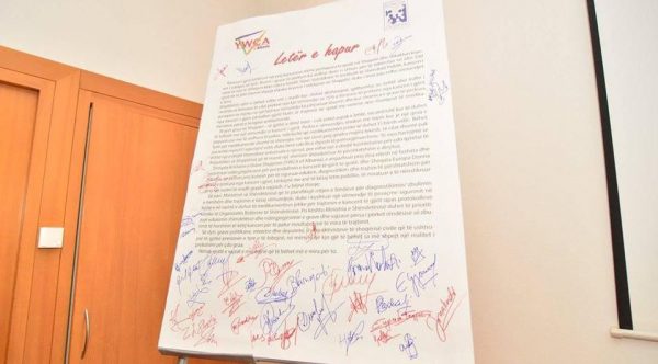 Në mbyllje të veprimtarisë u ftuan të gjithë pjesëmarrësit të firmosin Letrën e Hapur./ https://shendeti.com.al/