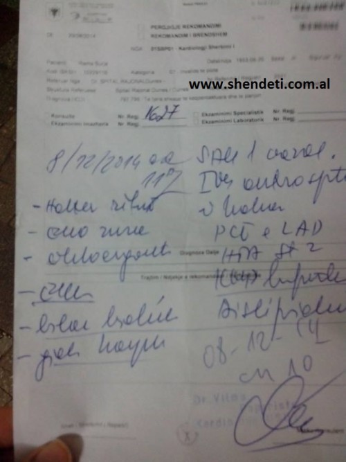 “Kam ardhur nga Durrësi për të bërë ekon e zemrës. E kam të rezervuar që prej gushtit. Nesër kam për të bërë një tjetër ekzaminim. Çfarë do të bëj më përpara nesër? E sigurt që do të luajë dallaverja se ka shumë si puna ime, që e kanë sot ditën e Ekos, nesër janë të tjerë…”.
