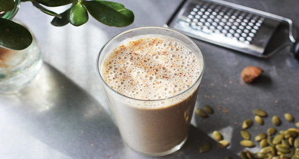 Përbërësit: 500 ml qumësht bajamesh, 2 lugë gjalp bajamesh ose vaj kokosi, 2 luge mjaltë, pak arrëmyshk.