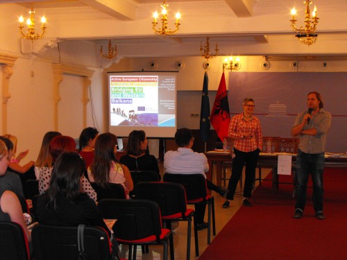 Dita e dytë e aktivitetit u hap me një konferencë për shtyp në sallën “Tefta Tashko Koço” të Ministrisë së Kulturës në Tiranë. Drejtoresha e organizatës, znj. Ana Mullanji, mbajti fjalën e hapjes duke u fokusuar në ndihmën që Bashkimi Evropian i jep vendeve si Shqipëria, përmes programeve komunitare dhe projekteve që sjellin së bashku aktivistë dhe profesionistë të fushave të ndryshme për të diskutuar çështje të interesit të përbashkët dhe për të ndihmuar në procesin e integrimit të vendit. Gjithashtu ajo u fokusua në prezantimin e vëzhgimit të bërë gjatë këtij projekti 17-mujor i cili sjell për herë të parë një këndvështrim të nocionit dhe perceptimit që kanë qytetarët e Ballkanit Perëndimor mbi qytetarinë evropiane.