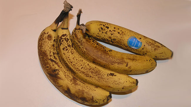 Bananet pasi piqen shumë, lëkura e tyre bëhet me njolla të errëta. Sa më shumë njolla të tilla të ketë një banane aq më e pasur është me elementë anti-kancerogjene.