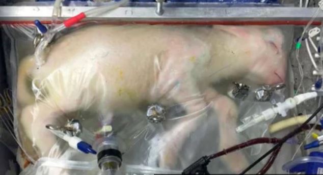 Një çantë plastike e mbushur me lëngje amniotikr – lëngu i pasur në vlera ushqyese që mban fetusit në mitër – krijoi mundësinë e zhvillimit të fetusit qengj në një moshë të barasvlershme me 23 javë tek njerëzit.