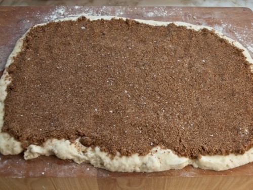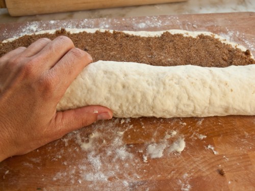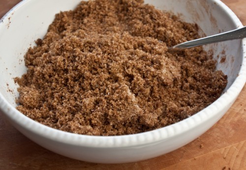 1. Nisni me përgatitjen e mbushjes: Hidhni sheqerin kaf, 3 lugë sheqer kokërr, kanellë, karafil dhe 1/8 lugë e vogël kripë në një tas të vogël. Shtoni një lugë gjalp të shkrirë dhe përziejeni me pirun ose gishta derisa përzierja t’i ngjajë rërës së lagur. Lëreni mënjanë.