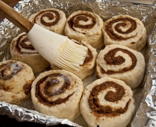 7. Lyejini lehtë me gjalp të shkrirë sipër dhe më pas futini të piqen për 25 minuta derisa të marrin një ngjyrë kafe të hapur. Përdorni letrën e aluminit për t’i transferuar në një vend më të ftohtë. Lërini për 5 minuta dhe pastaj nxirrini që aty.