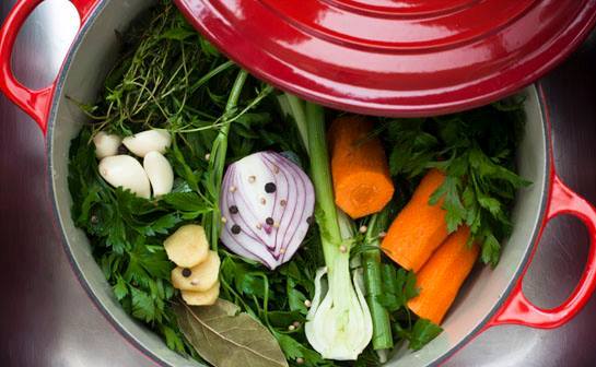 1. Vendosni zarzavatet dhe erëzat si dhe ingredientët sipas dëshirës që keni zgjedhur në një tenxhere dhe mbulojini me ujë të ftohtë.