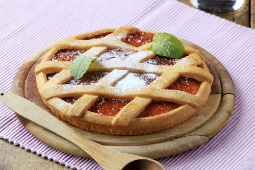 Nga brumi i zënë hapet një petë me trashësi 1 cm, mbi petë shtrohet një shtresë marmalatë e zbutur dhe e kaluar në sitë.