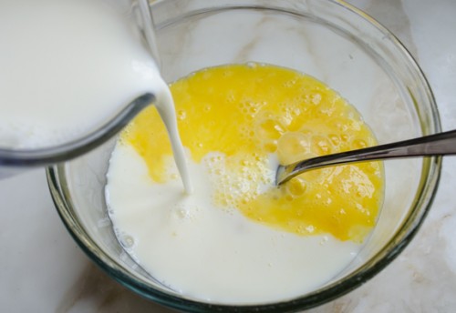 Bashkojeni përzierjen e qumështit me përzierjen e tërshërës, si dhe me gjalpin e shkrirë.