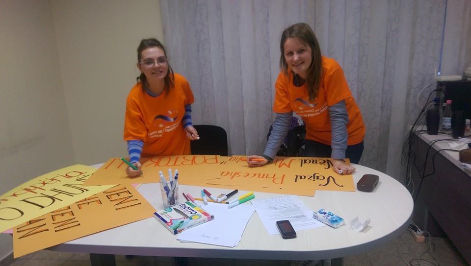 Në zyrat e Shoqatës “Together For Life” vijon puna për aktivitetin ee marshimit kundra dhunës. Stafi i shoqatës po përgatiti pankarta me slogane të ndryshme. Aktualisht kjo shoqatë po zbaton projektin për të dytin vit radhazi në kuadër të 16 Ditëve të Aktivizimit kundër Dhunës me bazë Gjinore. aktivitet i shoqatës “Together for Life” (Tiranë), me mbështetjen e UNDP, UN Women dhe me fonde te qeverise Suedeze.
