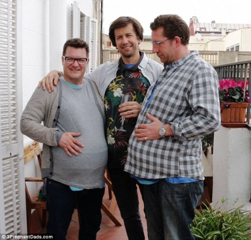 Stivi, 46 vjeç, i cili është i martuar me Ketin dhe ka një djalë 12 vjeç, të quajtur Saul, thotë: “Çdo ditë gjëra të tilla si veshja e kostumeve të shtatzanisë kthehen në një detyrë që duhet përmbushur patjetër”. Triot janë nga Anglia, por gjithë punën e bëjnë në Barcelonë. Ata i mbajnë këto kostume gjithë ditën dhe i heqin vetëm kur bëjnë dush.