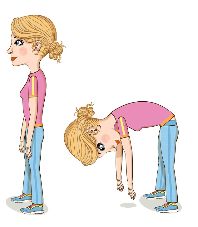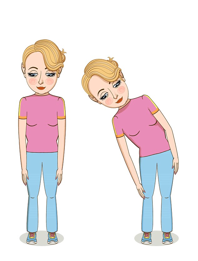 Qëndroni në këmbë me këmbët të hapura pak dhe duart poshtë. Përkuluni në njërën anë duke vendosur dorën poshtë këmbës. Përsëriteni ushtrimin në anën tjetër të trupit.