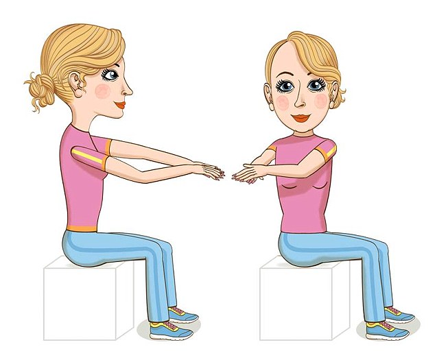 Uluni në një karrige pa mbështetëse. Mbani të dyja këmbët në dysheme dhe duart të përkulura përpara gjoksit. Kthejeni vetëm pjesën e sipërme të trupit nga ana e djathtë në të majtën. Përsëriteni këtë trajtim disa herë.