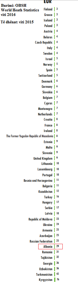 Kjo është statistika zyrtare e raportit Ëorld Health Statistics (Statistikat Botërore të Shëndetësisë) për vitin 2016 të “Organizatës Botërore të Shëndetësisë (OBSH)”.