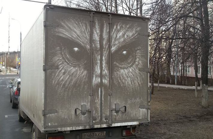 Artisti Nikita Golubev realizon grafite në makina të mbuluara nga pluhuri. Edhe pse është një art i përkohshëm, realizimet e tij janë me të vërtetë të mrekullueshme.