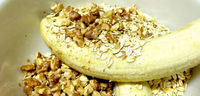 Qëroni dy banane (të cilat duhet të jenë të buta). Ndajini në copa të vogla dhe shtojini ato në 100 gram dritthëra. Shtypni bananet me pirun dhe ipërzieni me drithërat, derisa të krijohet masë homogjene. Vendoseni atë në një fletë pjekje me lugë, duke përhapur përzierjen në formën e biskotës. Mund ta spërkasni me lajthi të thërmuar. Piqini këto biskota në 200 gradë rreth 15 minuta derisa të arrijnë ngjyrë kafe.